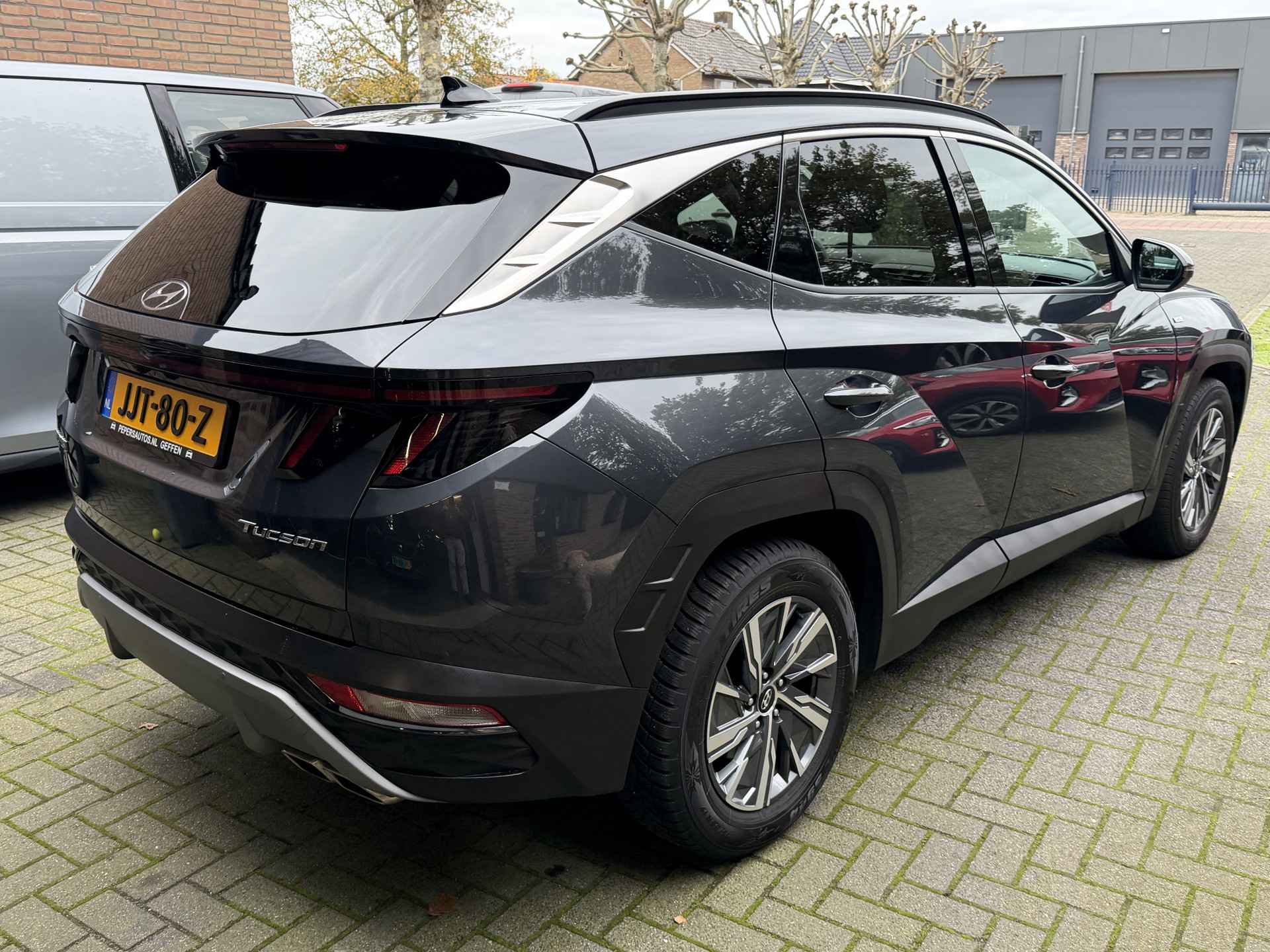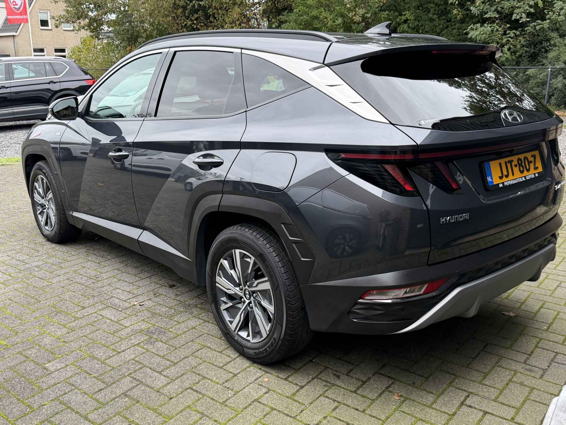 Dit is een auto die is ontworpen voor uw comfort. Deze Hyundai Tucson is van het bouwjaar 2023. Met zijn benzinemotor en automatische transmissie is dit een prima auto voor nog vele kilometers. 's Winters op pad gaan kan een behoorlijke uitdaging zijn. Daarom is deze Hyundai Tucson voorzien van weldadige verwarmbare voorstoelen. Een handige voorziening op deze auto is de elektrische achterklep die u op afstand kunt openen. Deze Hyundai Tucson heeft een verwarmd stuurwiel. Nooit meer koude handen onderweg. De uitmonstering van deze auto wordt gecompleteerd door onder meer 19 inch lichtmetalen velgen, LED koplampen, donker getint glas achter, in delen neerklapbare achterbank, LED-achterlichten en verstelbare lendensteunen.